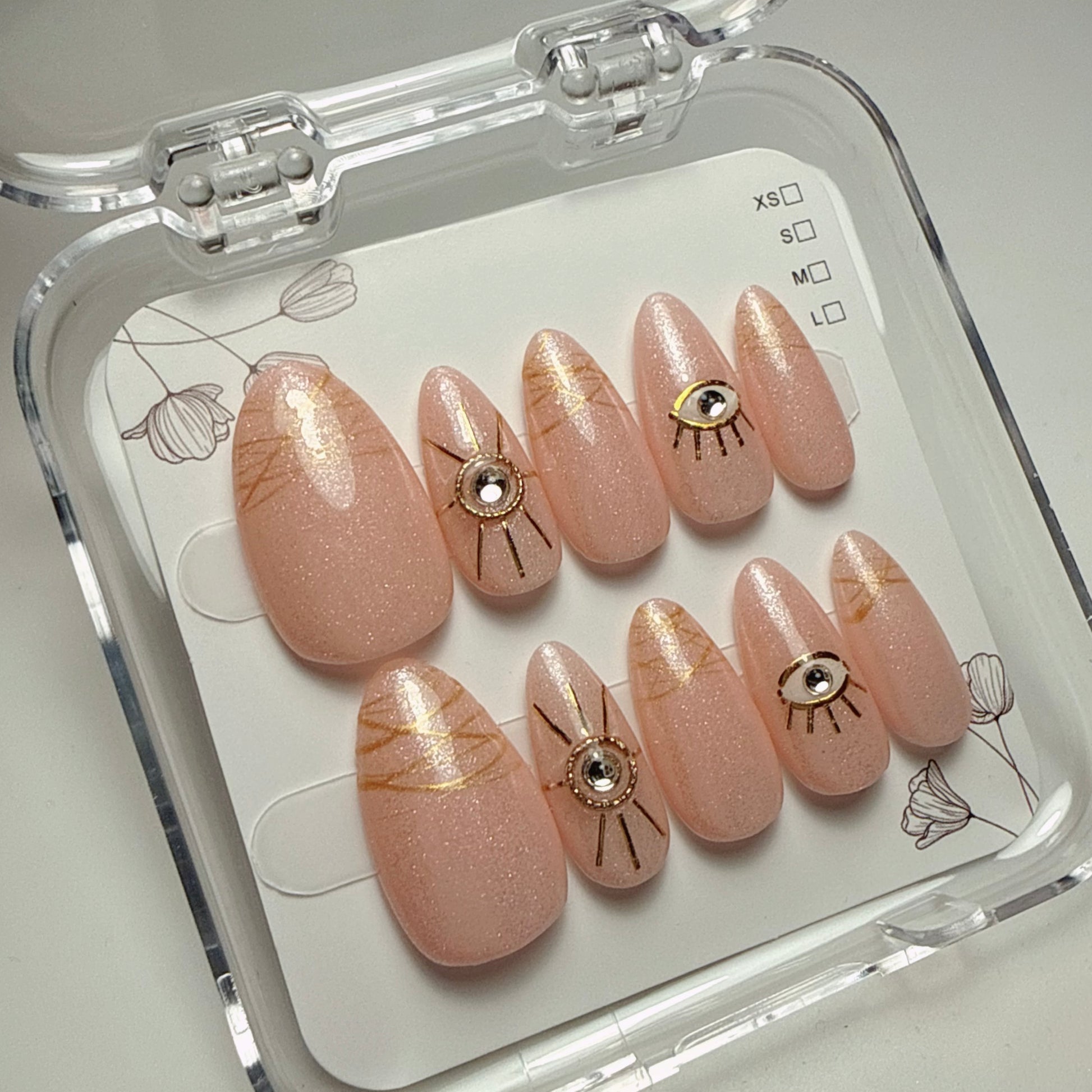 Shimmering nude tones, gold accents, and a bold charm touch! GOLDEN GAZE brings effortless glam to every look.
