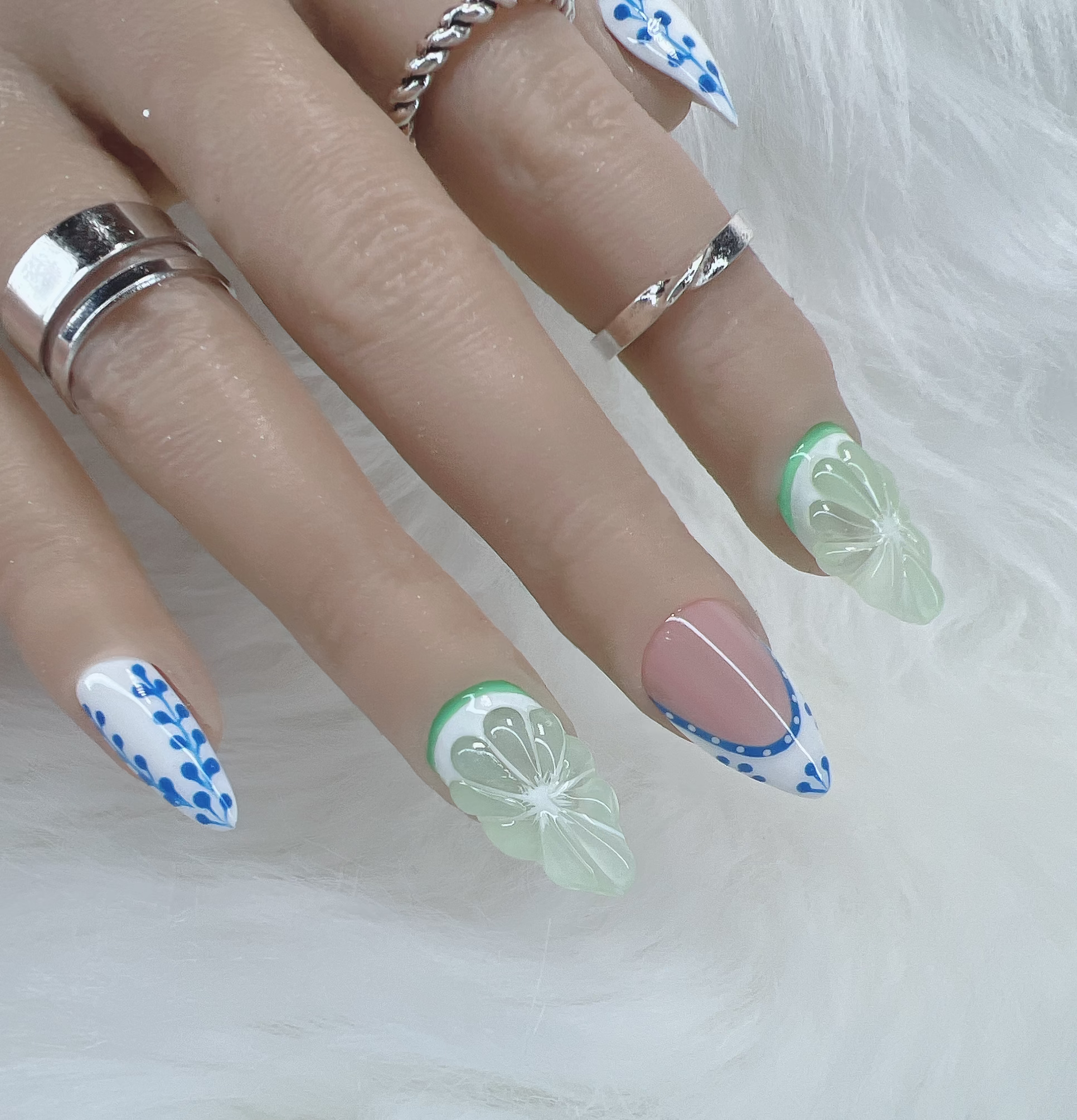 Unleash your inner zestiness with LIME TWIST! These 3D lime feature nails add a pop of playfulness to your look. Show off your unique style with a twist of fun.